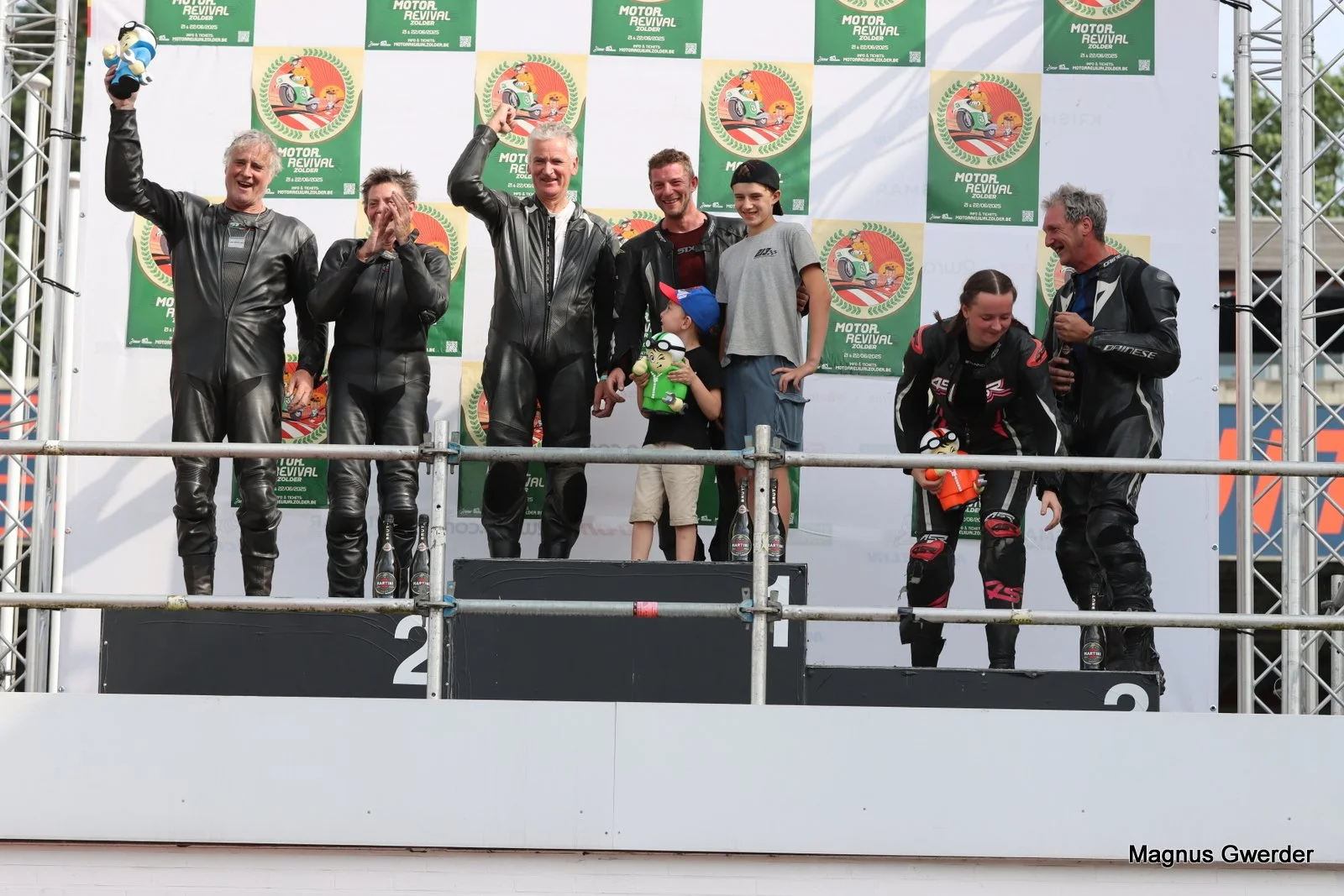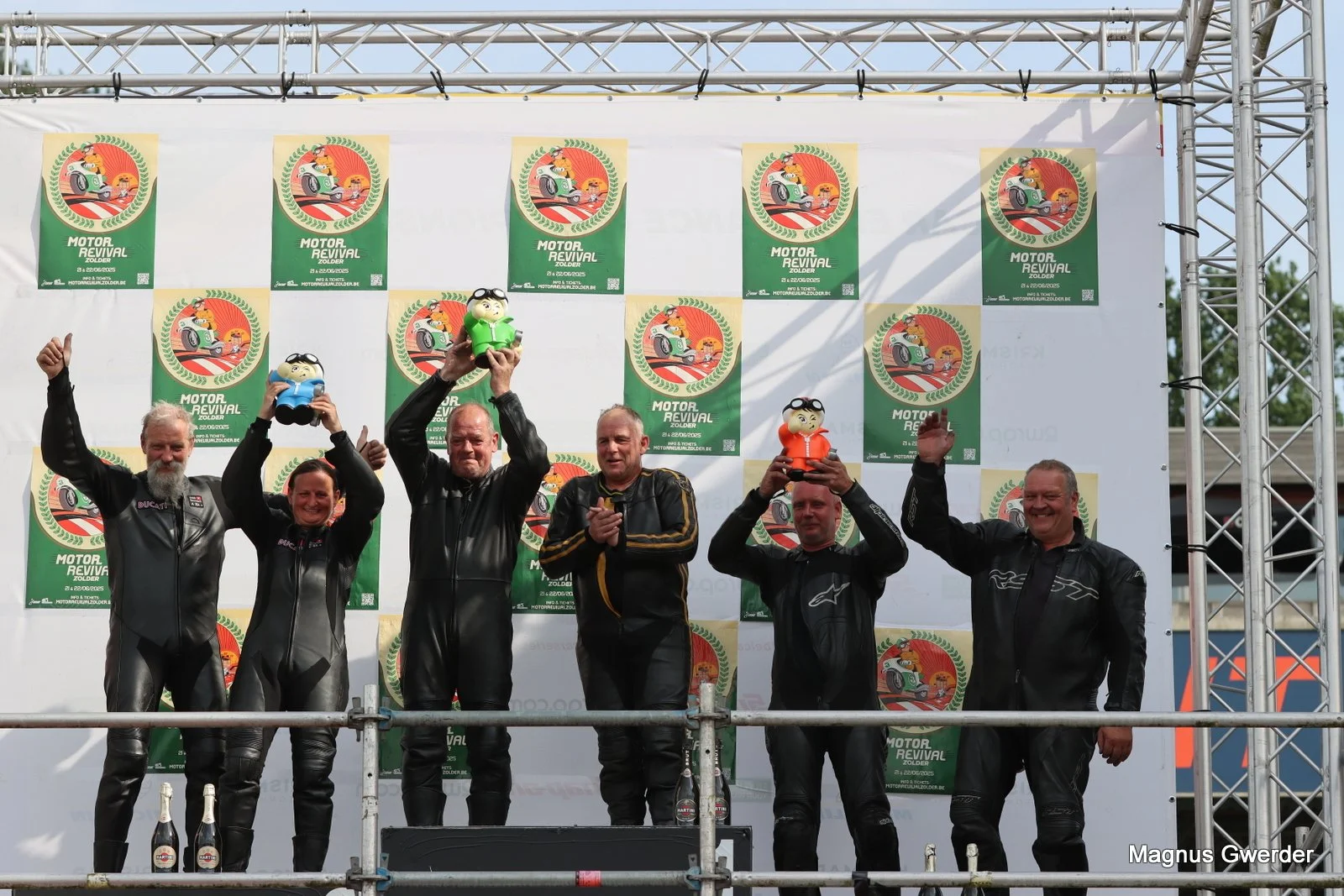 Race 1 Was won by Marvin Vermeulen and Troy Klinker having missed the previous round at Assen having been on the Isle of Man at the Pre TT Classic Races, Second was Robert Schoonderbeek and Marja van Den Bor making up for the problems they had at Assen in the previous round in Third place was Patrick Karls and Vincent Van Den Hautte,