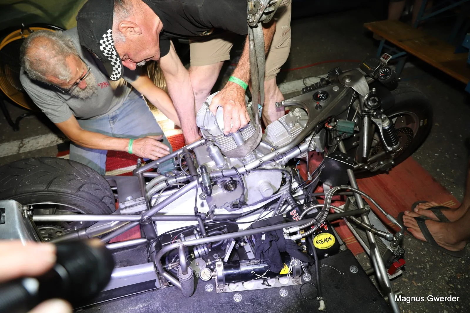 Race 1 was won by Jon Perkins and Ian Nickels in their first race of this years championship, second were Ray Reeves and Yens Van Den Bor and third place went to Zita and Guido Reichmuth who had have a new engine brought all the way from Switzerland Saturday afternoon, changed overnight to make it to the start line for the race on Sunday.